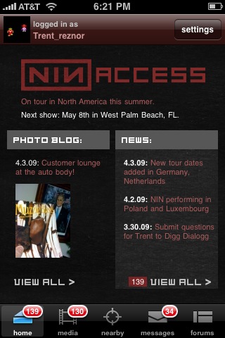 | 21:08, 16 April 2009 | Trentsiphone.jpg (file) | 53 KB | A screencapture of Trent Reznor's iPhone showing NIN: Access | 1 | |